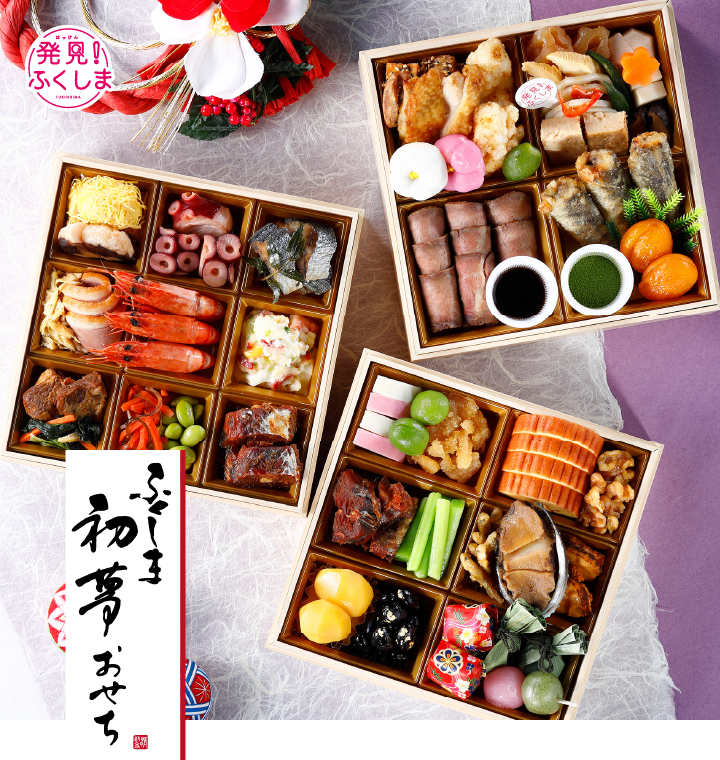 ふくしまに由来する食材や地方に伝わる郷土料理をふんだんに取り入れ、多彩な味わいのお重に仕立てました。「福の恵み」豊かな正月料理の数々をお楽しみください。