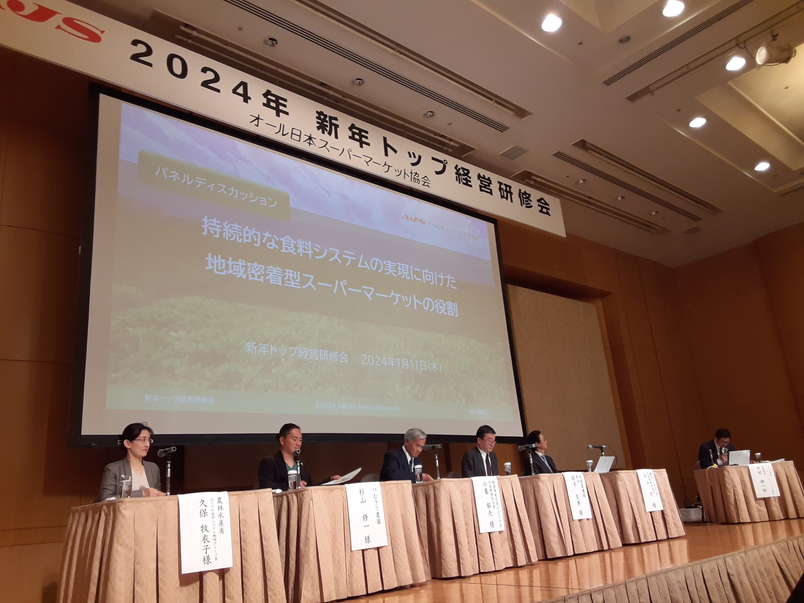 当日は、農林水産省様 全面協力のもと、「持続的な食料システムの実現に向けた地域密着型スーパーマーケットの役割」と題して、農林水産省様の特別講演に始まり、農林水産省・農業生産者・農機具メーカー・小売業を代表するパネリストによるパネルディスカッションを行い、参加者の皆様とサプライチェーン全体で日本の食料・農林水産業を考える機会となりました。