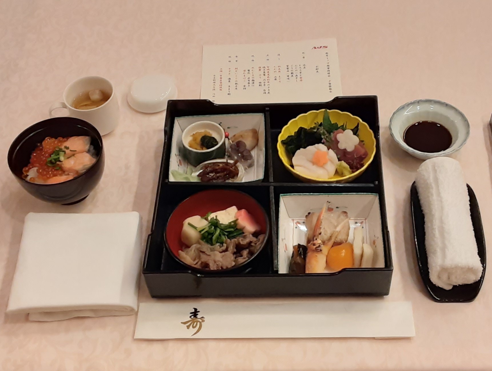 また、夕食懇親会においては、ALPS 処理水の海洋放出に伴う風評や一部輸入禁止の影響を受ける、三陸・常磐産品の消費喚起の観点から、三陸・常磐ものネットワーク(経済産業省)様、横浜ベイホテル東急(日本料理 大志満)様にご協力を頂き、三陸・常磐食材を使った夕食メニューをご用意し、お召し上がり頂きました。