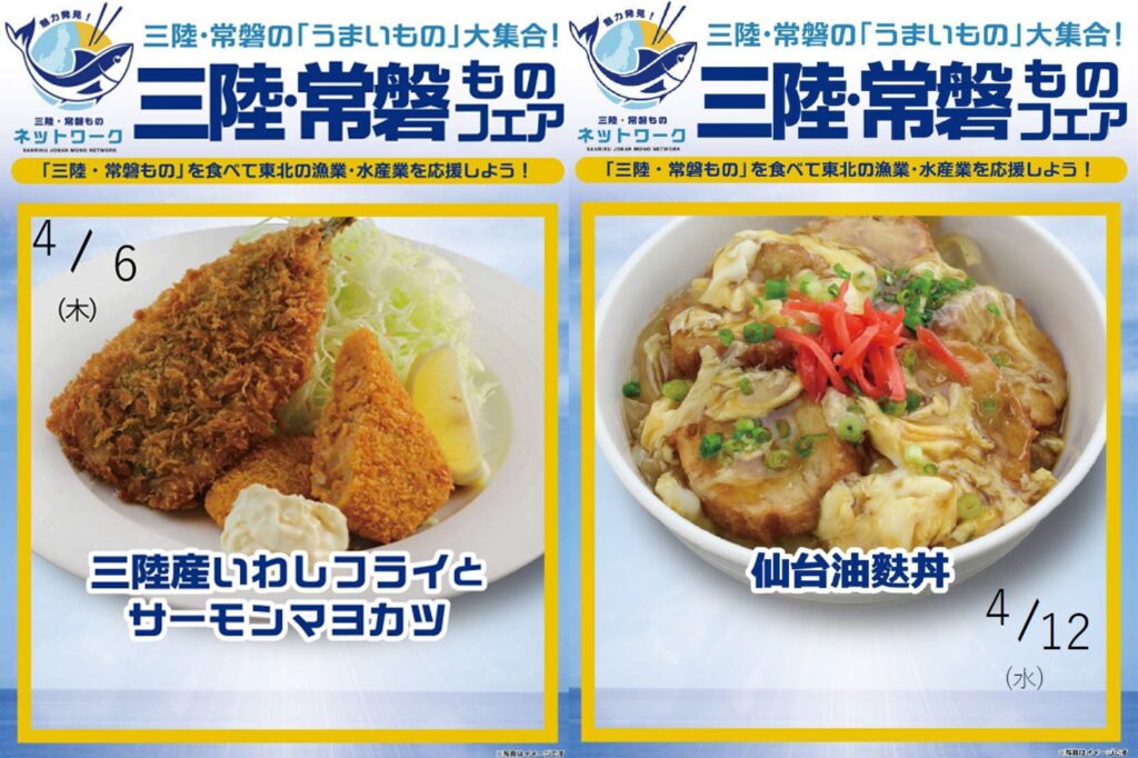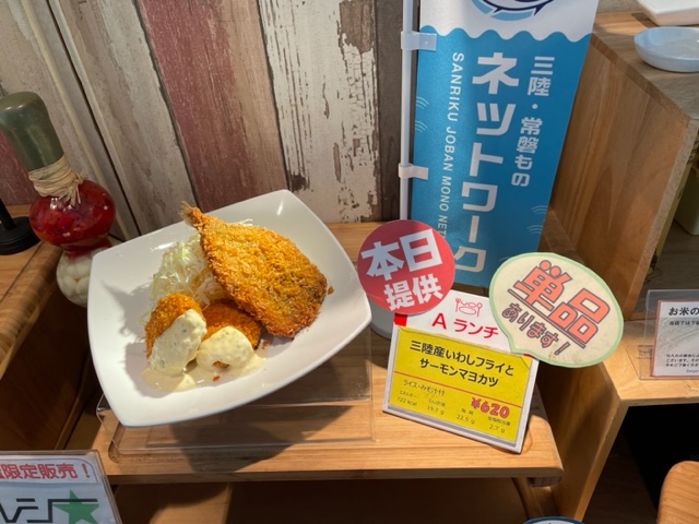 - 提供した社食メニュー:6日 三陸産いわしフライとサーモンマヨカツ、 12日 仙台油麩丼