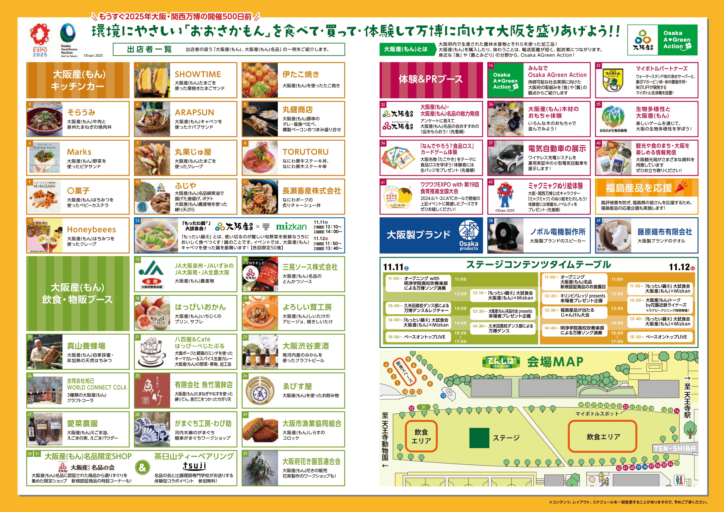 大阪府は、環境にやさしい大阪産(もん)を楽しむイベント「Welcomingアベノ・天王寺おおさかもん祭り Road to EXPO2025」を2023年11月11日(土曜日)から11月12日(日曜日)に、天王寺公園エントランスエリア「てんしば」にて開催しました。