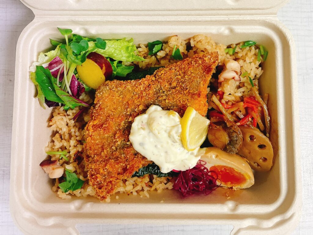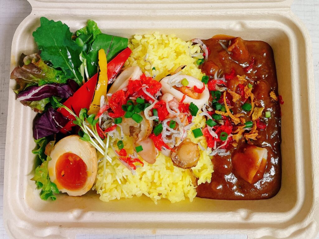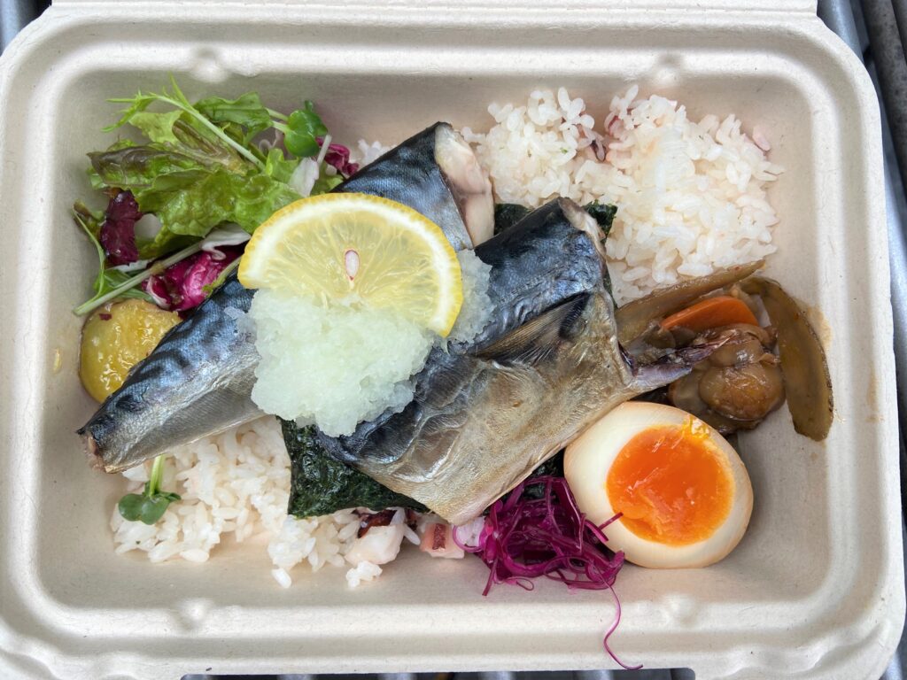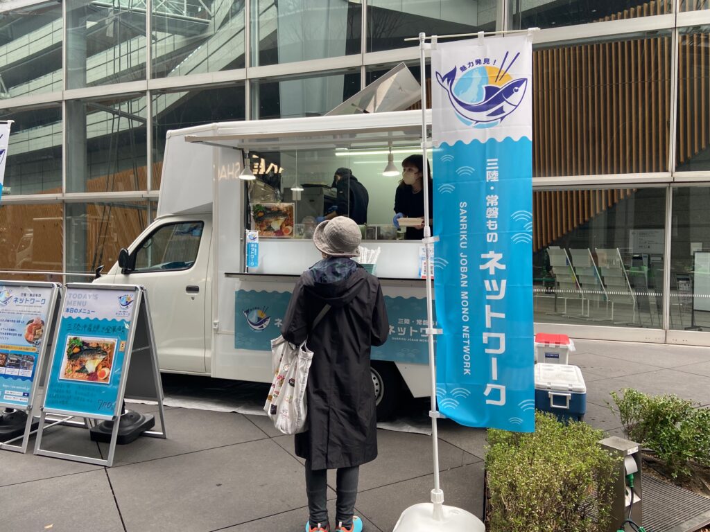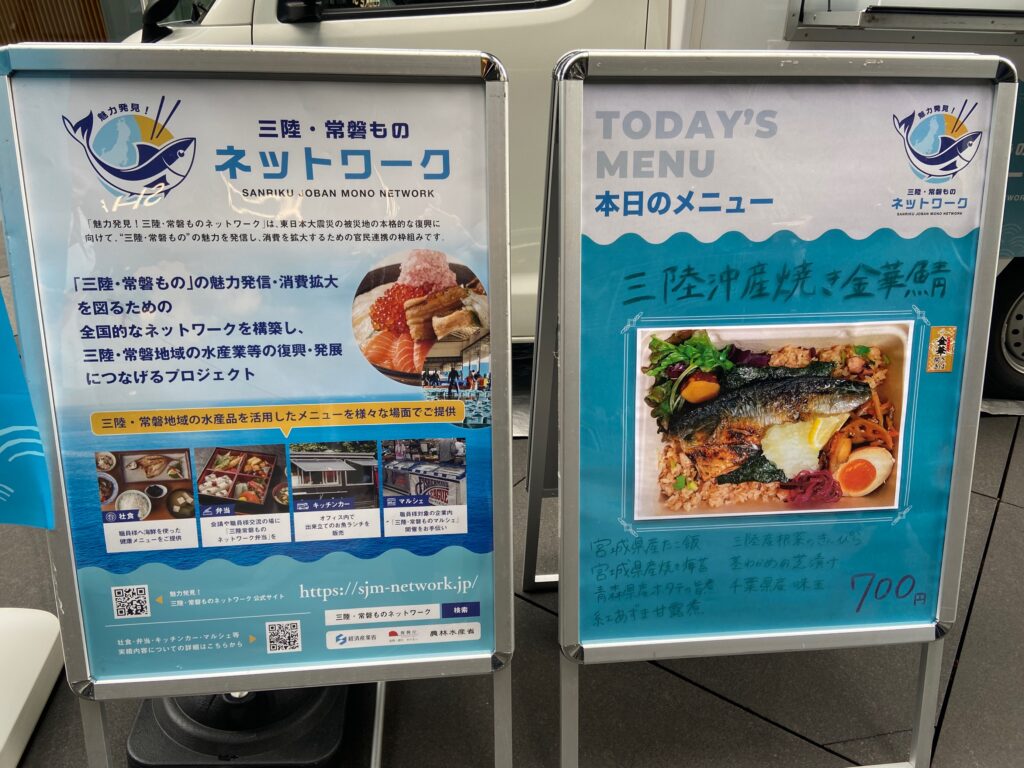 東京国際フォーラム前にて、三陸沖の金華サバやクロソイ、ホタテ等を使用した、「三陸沖の金華焼き鯖弁当」「三陸沖のシーフードカレー」「三陸沖の白身魚のフライ弁当」の3種類を日替わりで提供します。オフィスがお近くの企業・団体の皆様のご利用をお待ちしております。