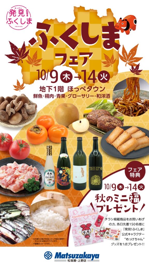 この度、松坂屋上野店にて10月9日(木)から14日(火)の6日間、「ふくしまフェア 秋」を開催いたします。