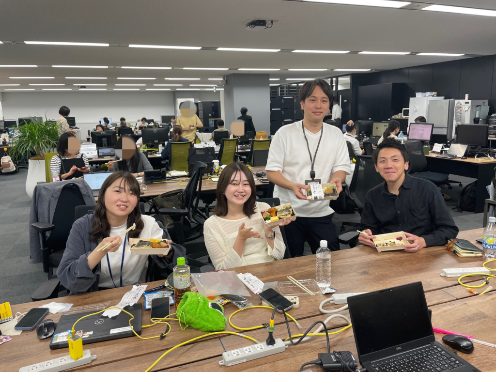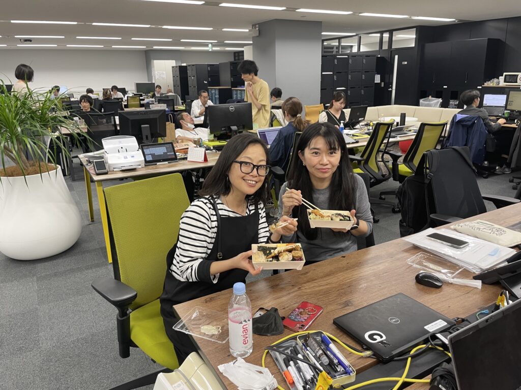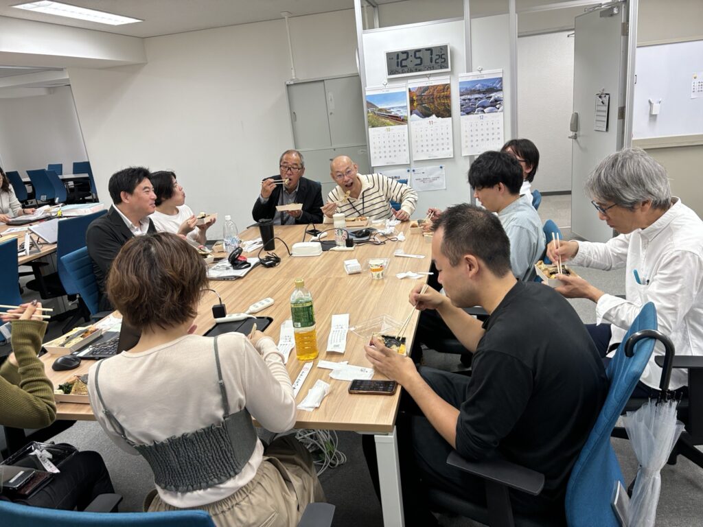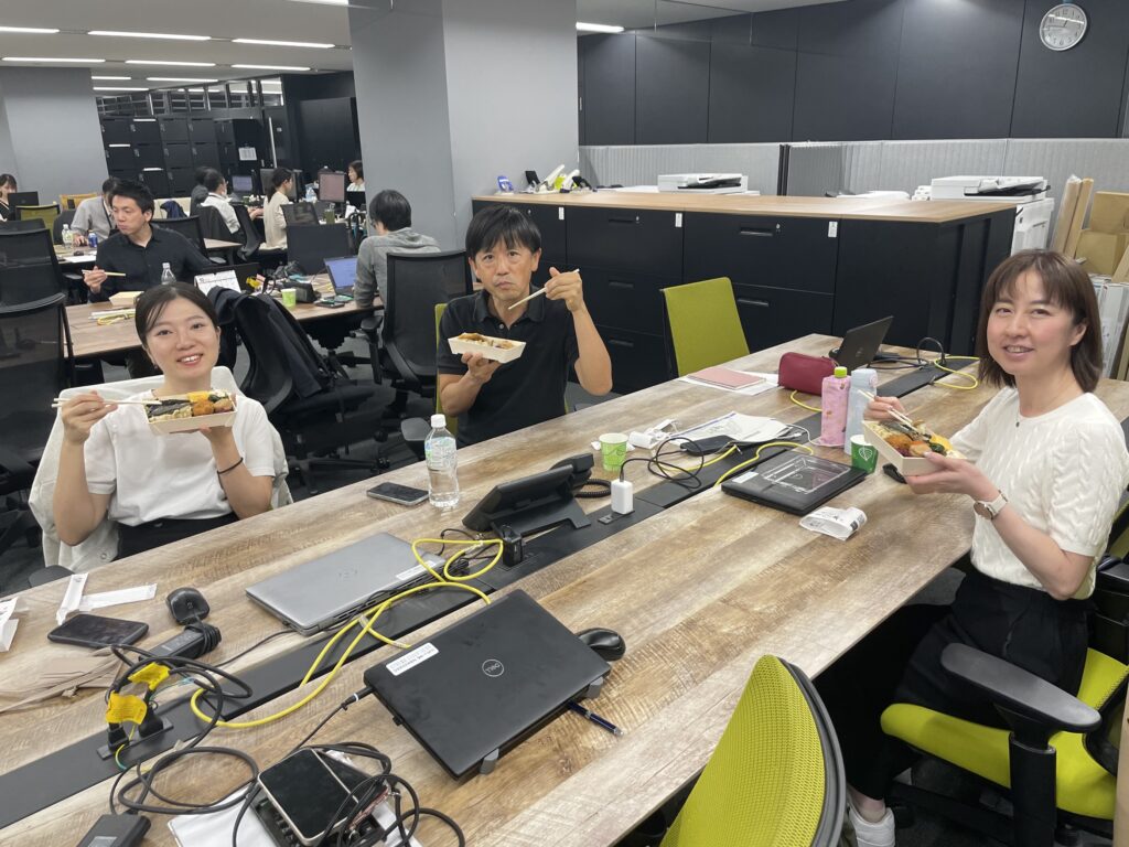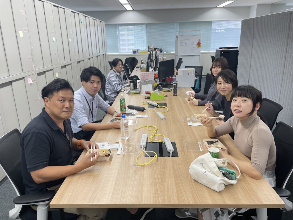 お弁当が届くとすぐに行列。普段は個別に購入したテイクアウトや外食で昼食をとる社員も、各自仲の良いメンバーや業務チームメンバー等と輪になり、美味しく、楽しくお弁当を堪能しました。 当社では引き続き、三陸・常磐ものの魅力発信の取組を社内外問わず促進し、国産水産物のおいしさ・安全性の理解醸成に努めてまいります。