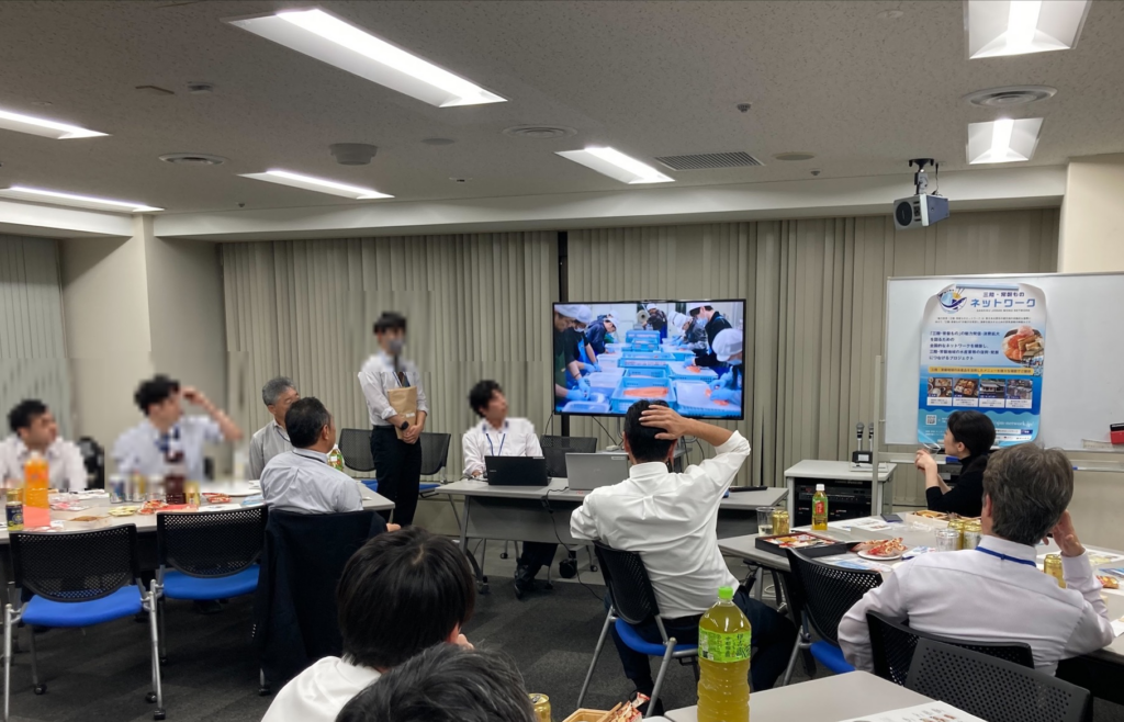 独立行政法人中小企業基盤整備機構では、「三陸・常磐ものネットワーク」の取組みのため、内部行事として10月16日と10月31日に「三陸・常磐ものネットワーク」のお弁当会を実施しました。当日は、三陸・常磐もの海産物や三陸常磐ものネットワークについて学ぶ時間も設け、参加した職員からは、「お弁当も美味しく、また職員同士の交流の機会にもなり、大変良い会だった」「ぜひ多くの皆さんに安心して美味しく食べられることを発信していきたい」といった声がありました。当機構では今後もこのような内部行事等を通じて「三陸・常磐ものネットワーク」の取組みを推進してまいります。