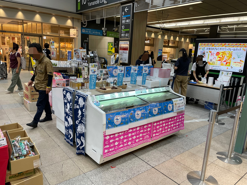 JR日暮里駅構内に大きな売場が設置され、9/3(日)~9/5(火)には福島県の観光PR隊である「HAPPYふくしま隊」も駆けつけました。
