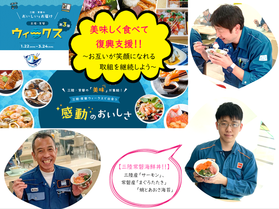三陸・常磐ウィークス第3弾の期間に合わせて、前回の三陸産に加えて常磐産の食材も使用した海鮮丼を提供しました。