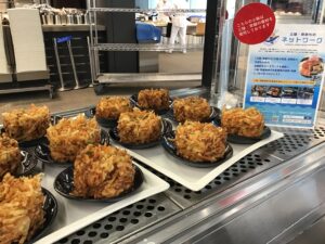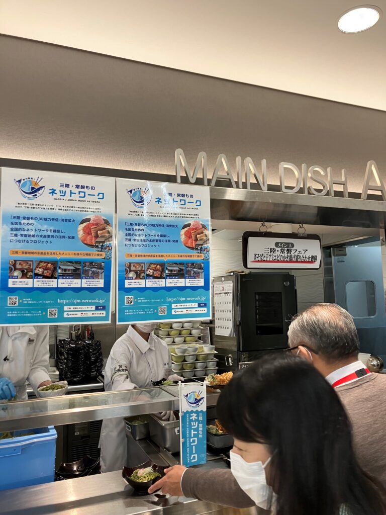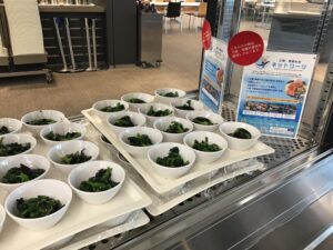 復興支援の意味を込めて3月6日(月)~3月10日(金)の1週間、本社社員食堂にて三陸・常磐ものを使用したメニューを提供いたしました。どのメニューもボリューム満点で、盛況のうちに終了いたしました。また、メインメニューの他に副菜コーナーにも三陸・常磐ものを使用した小鉢が並びました。今後、本社の他、製油所の社員食堂でも実施予定です。今後も三陸・常磐ものの魅力を社員に再発見していただけるよう取り組んでまいります。