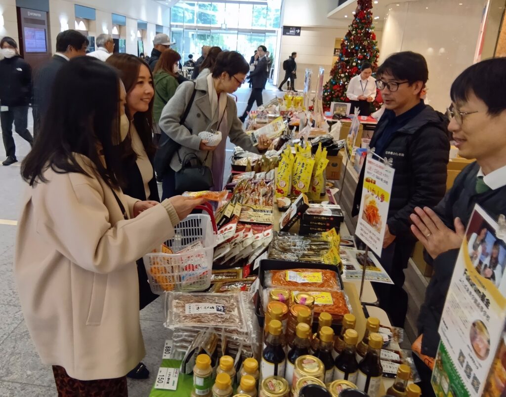 東洋建設では11月19日、本社が入居する東京都千代田区の神保町三井ビルディング1階北側エントランスホールで、福島県の水産品などの物産を販売する「福島復興マルシェ」を開催しました。