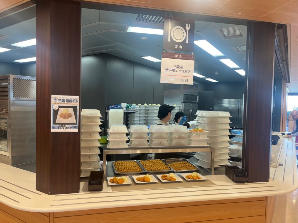 この日のメニューは「三陸産サーモンマヨカツ」でした。20代の女性社員は「被災地まで気軽には行けないので、社食で食べることで応援できるのはとてもいい取組だと思います」と笑顔で話してくれました。20代の男性社員も「宮城には行ったことがないので、おいしいものを食べにぜひ行ってみたいと思いました」と話してくれました。