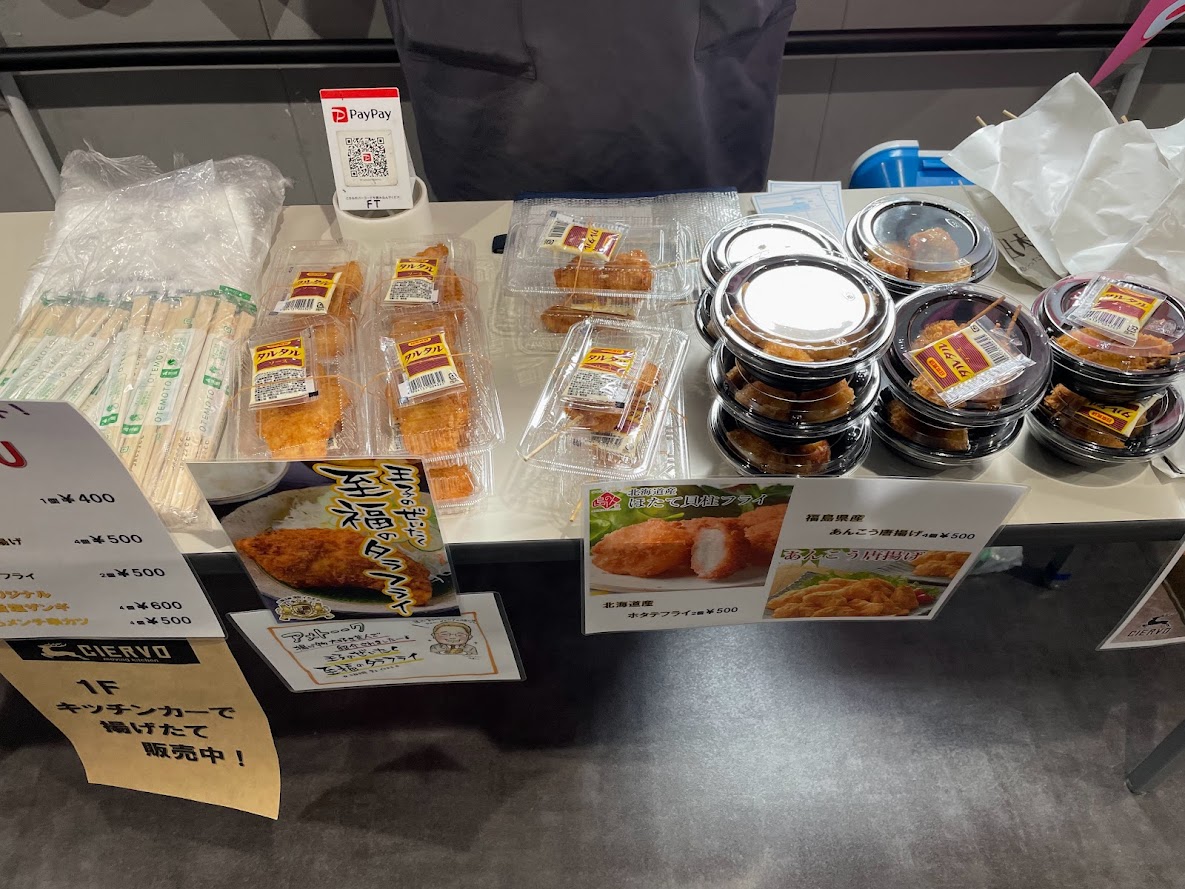サブホームタウンである札幌市からはほたてを、福島県郡山市からは常磐沖や三陸沖で獲れたもしくは加工された海産物をつかった海鮮丼やタラフライ、アンコウの唐揚げなどの海鮮グルメや、愛知県西尾市の特産品である抹茶を使ったラテやティラミスなどのスイーツ、福島県産のりんごや柿などを使ったスイーツピザなど、甘党も必見のコラボスイーツも出品しました。