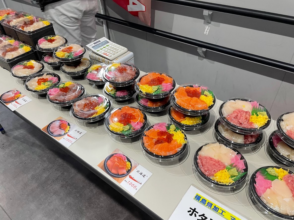 ・福島県内加工マグロのたたき、北海道産ホタテ