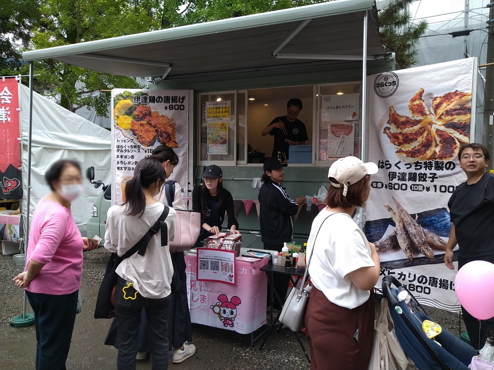 「ふくしま屋台村」では、「発見!ふくしま」のキッチンカー「ふくしまレストラン(四ッ谷haraku-chi)」様に、「常磐もの」のメヒカリの唐揚げなどをご用意いただき、大変多くのお客様に「常磐もの」を味わっていただくことができました。