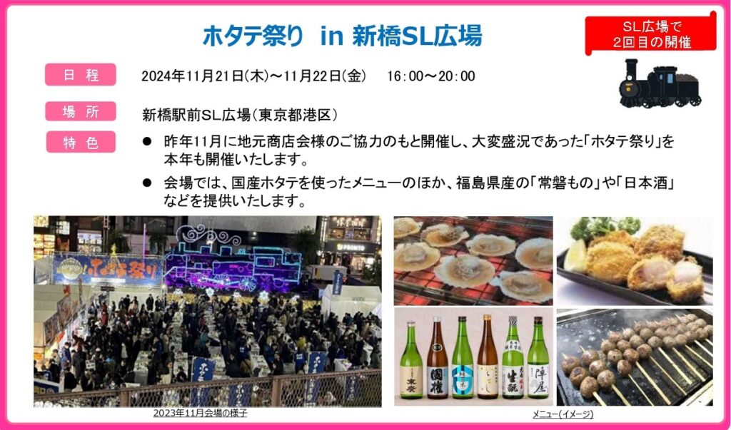 東京電力グループが取り組む「発見!ふくしま」は、昨年11月に地元商店会様のご協力のもと開催し、大変盛況であった「ホタテ祭り」を本年も開催いたします。