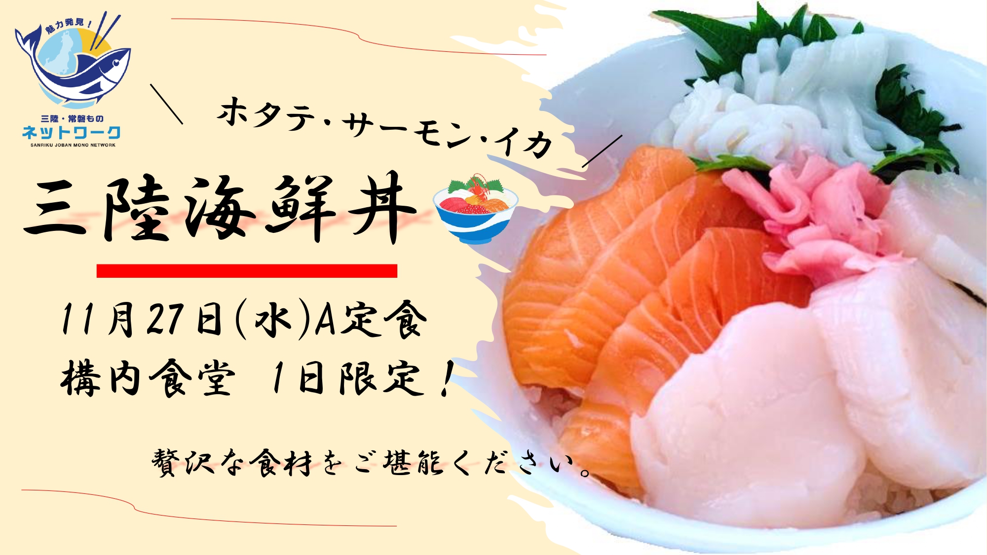 昨年に引き続き、「三陸海鮮丼」を定食にて提供!
