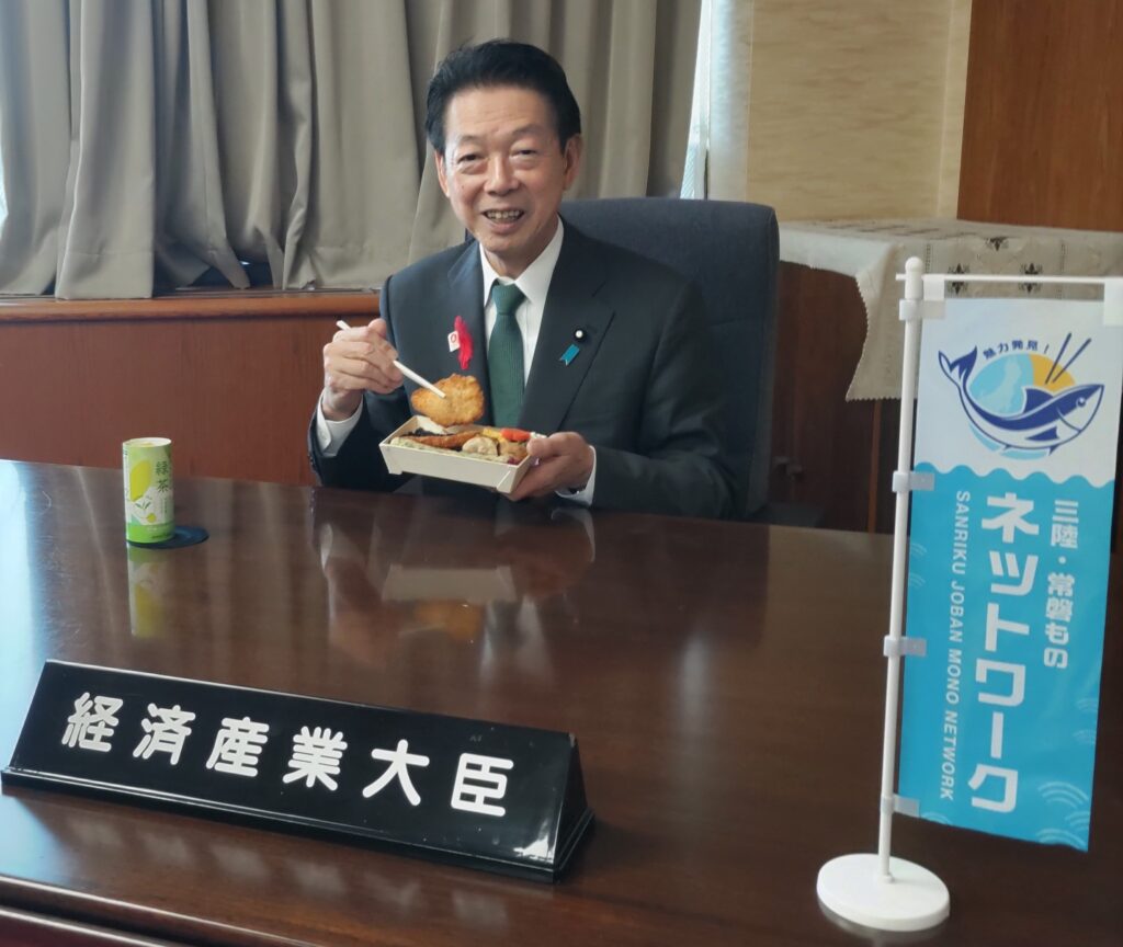 武藤経済産業大臣は、「三陸・常磐もの」の福島県沖でとれた天然ヒラメや、福島県浜通り産コシヒカリなどを使ったお弁当を楽しみました。