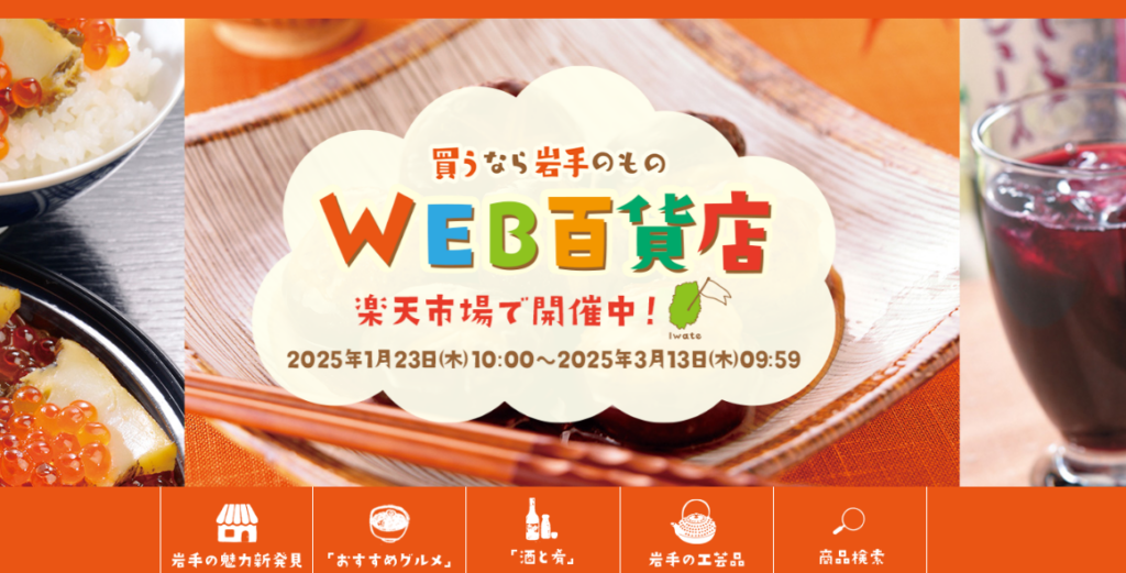 楽天市場で、岩手県内事業者による県産品の特設サイト「買うなら岩手のものWEB百貨店」を開設しました。