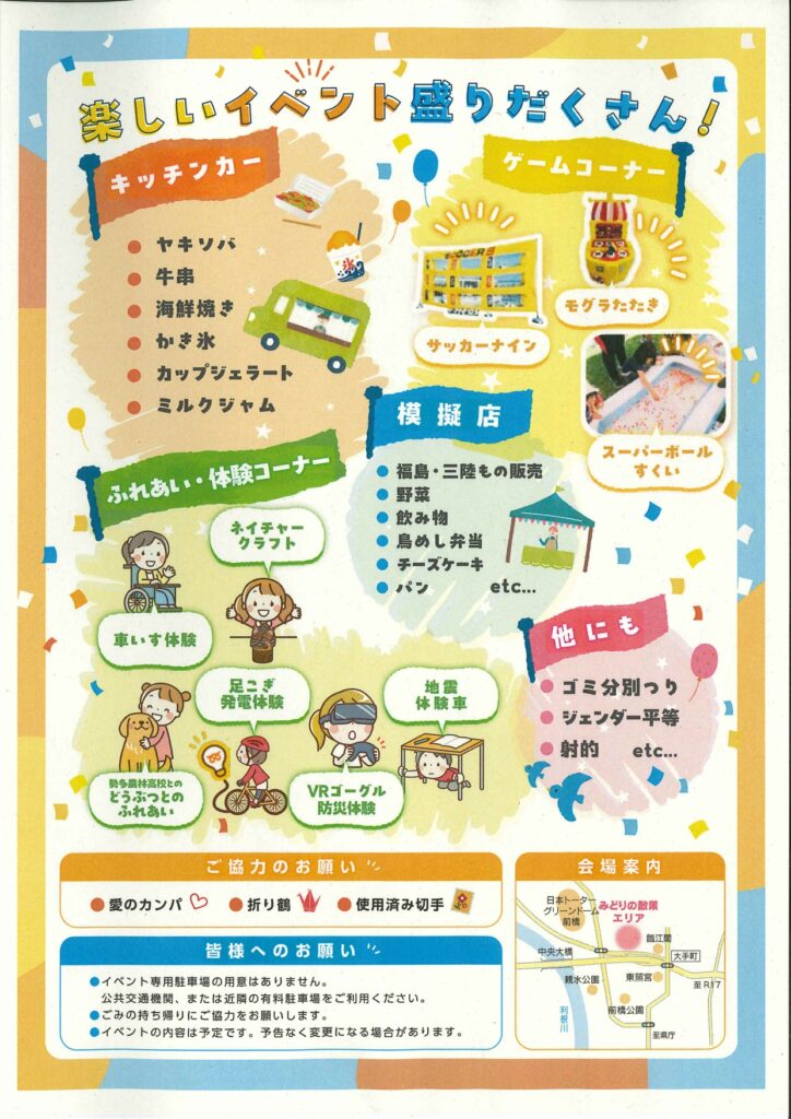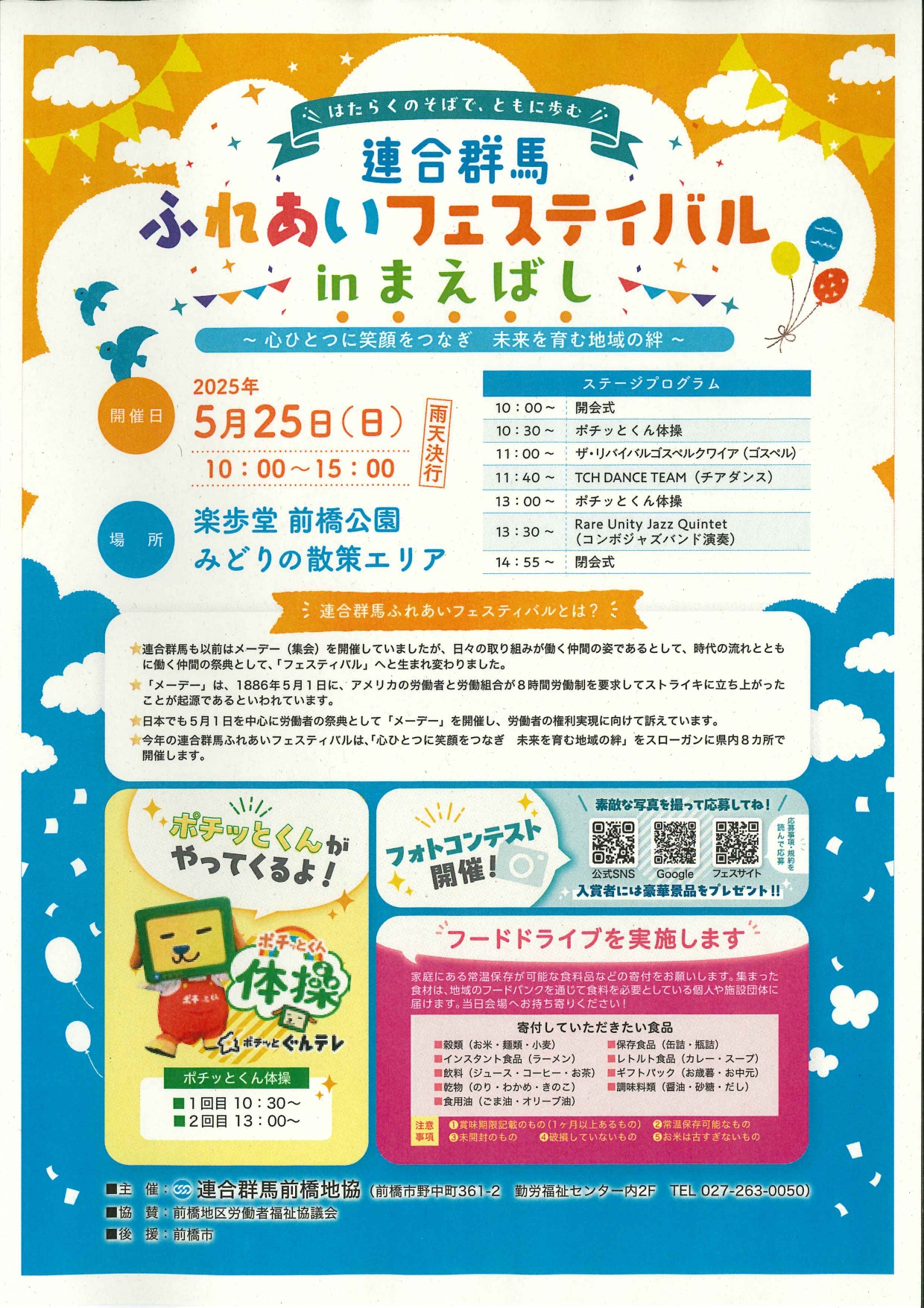 群馬県前橋市の「楽歩道 前橋公園 みどりの散策エリア」で開催される「連合群馬 ふれあいフェスティバル inまえばし」の会場に、福島・三陸の美味しいものが大集合します!
