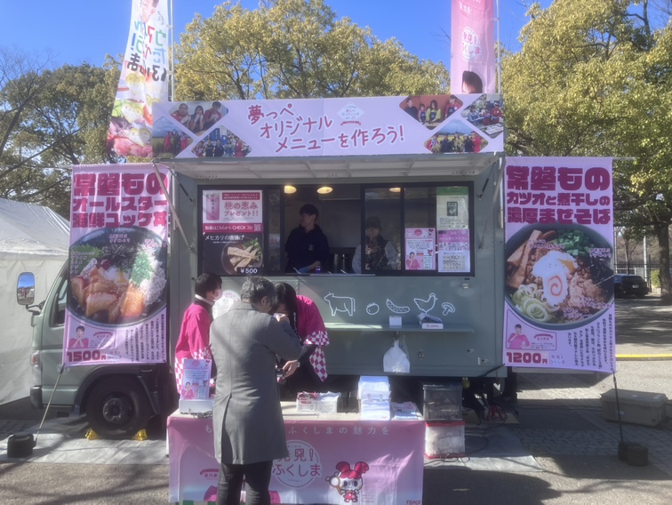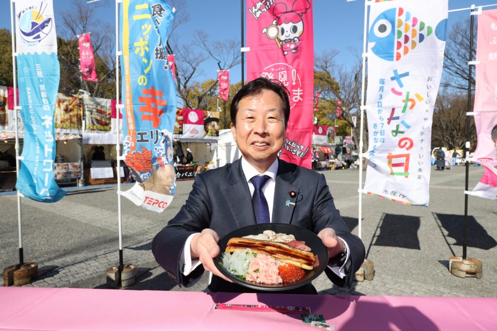 また、東日本大震災からの復興応援を目的に、「常磐もの」をはじめとした福島県産品のPRイベント「発見!ふくしまお魚まつり」が同時開催され、会場ではオリジナルメニューの「常磐ものオールスター海鮮ユッケ丼」「常磐ものカツオと煮干しの濃厚まぜそば」などが提供されました。