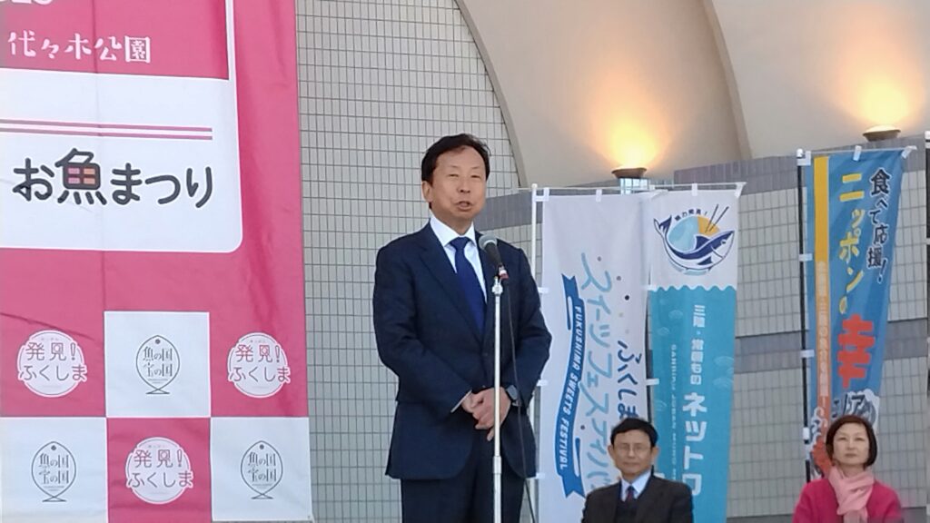 開会式では、大串経済産業副大臣や藤田水産庁次長など関係者による挨拶の後、鏡開きが行われました。
