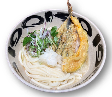 - 三陸産 イワシの赤しそ天 薬味おろしうどん